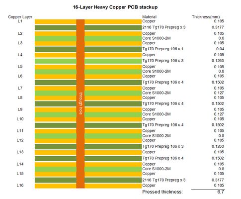 | Layerconfiguratie | 16-laag PCB, 3 oz zwaar koper per laag |